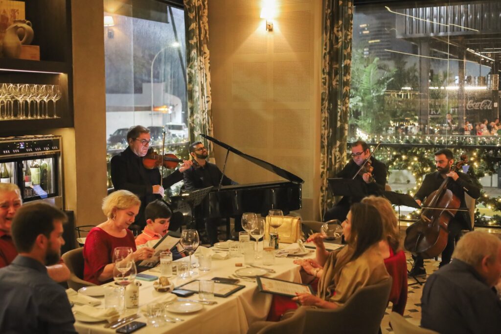 Para tornar a experiência ainda mais especial, a ceia será acompanhada pela apresentação de um Quarteto Instrumental, das 20h às 23h. A trilha sonora foi cuidadosamente escolhida para criar uma atmosfera elegante e envolvente, reforçando o clima de celebração e acolhimento que o Natal pede.