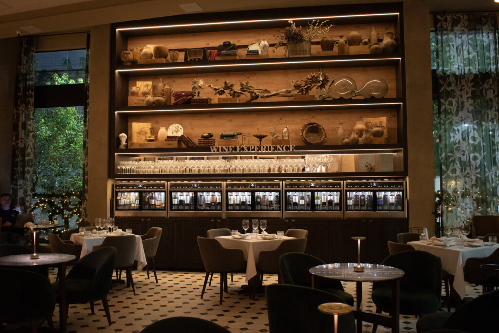 A réplica do DOC está instalada entre os ambientes do Wine Bar e da Trattoria, sobre um painel de vidro. Clientes podem personalizar as rolhas dos vinhos consumidos no local com seus nomes e a data e depositá-las nesse painel, “eternizando a experiência“.